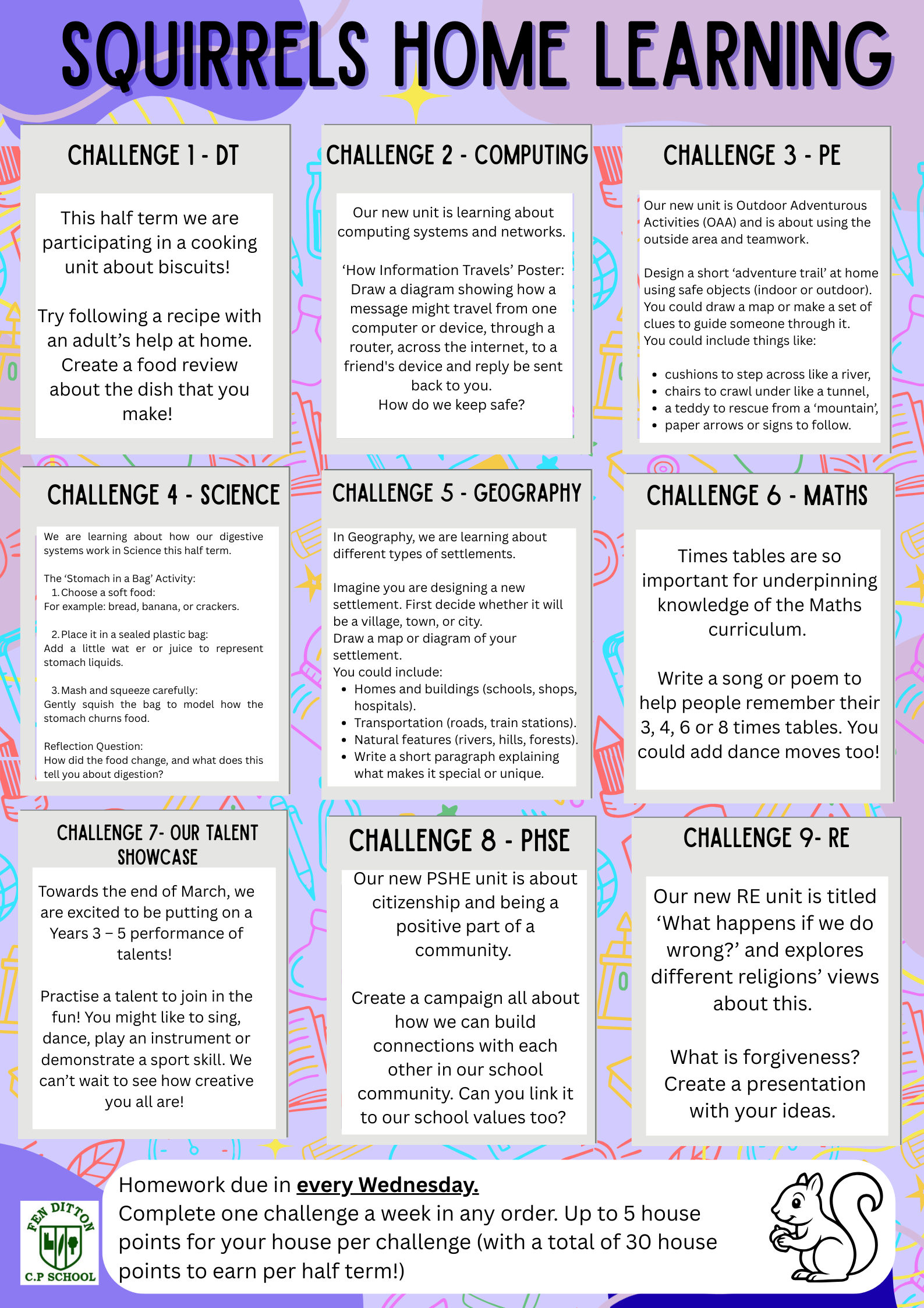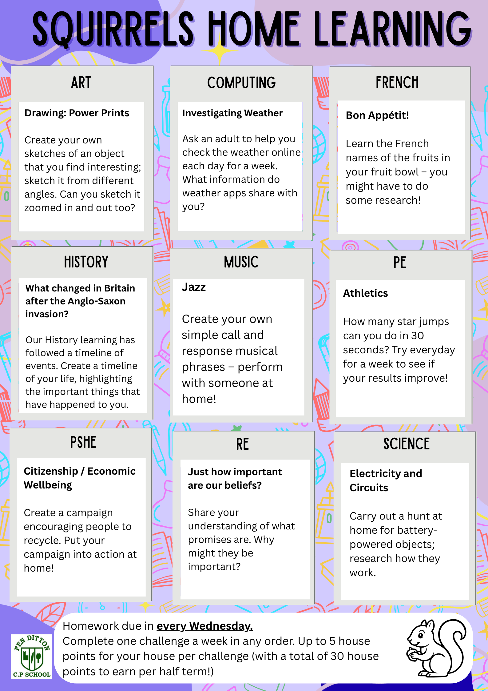 If you have any questions or need support with home learning, please don’t hesitate to contact your child’s class teacher.